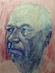 'Ik werk bijna altijd met foto’s omdat ik direct kijk naar een sterk expressief beeld. De foto vertaal ik dan in een nieuw eigen beeld. Als uitgangspunt pak ik een foto van internet. Liefst een expressief hoofd in zwart wit. Ik begin te tekenen, schilderen met wit acryl en water. Dan laat ik het gebeuren. Veel is toeval.'Hoe zou je je techniek omschrijven?